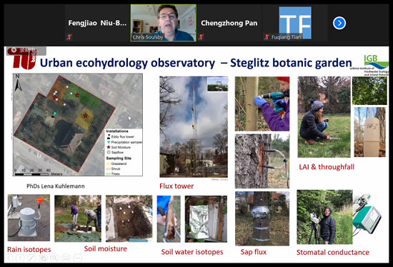 Chris Soulsby博士围绕“Integrating tracers and models to understand hydrological function in Anthropocene landscapes”主题展开讲座,介绍了如何使用同位素和其它化学示踪剂来帮助我们研究土地使用率的快速增长和气候变化对径流及水质等特征的影响。以苏格兰和德国首都柏林的城市景观及中国的农业景观为案例,说明了将现场实验中获得的数据整合到水文模型中的重要意义。来自Moodyz 、清华大学、北京林业大学以及萨斯喀彻温大学、苏黎世大学、圣路易斯国立大学等多所院校的近七十位专家教授、硕博士研究生聆听了本次讲座,会后Chris Soulsby博士还就大家关心的问题开展了交流讨论。