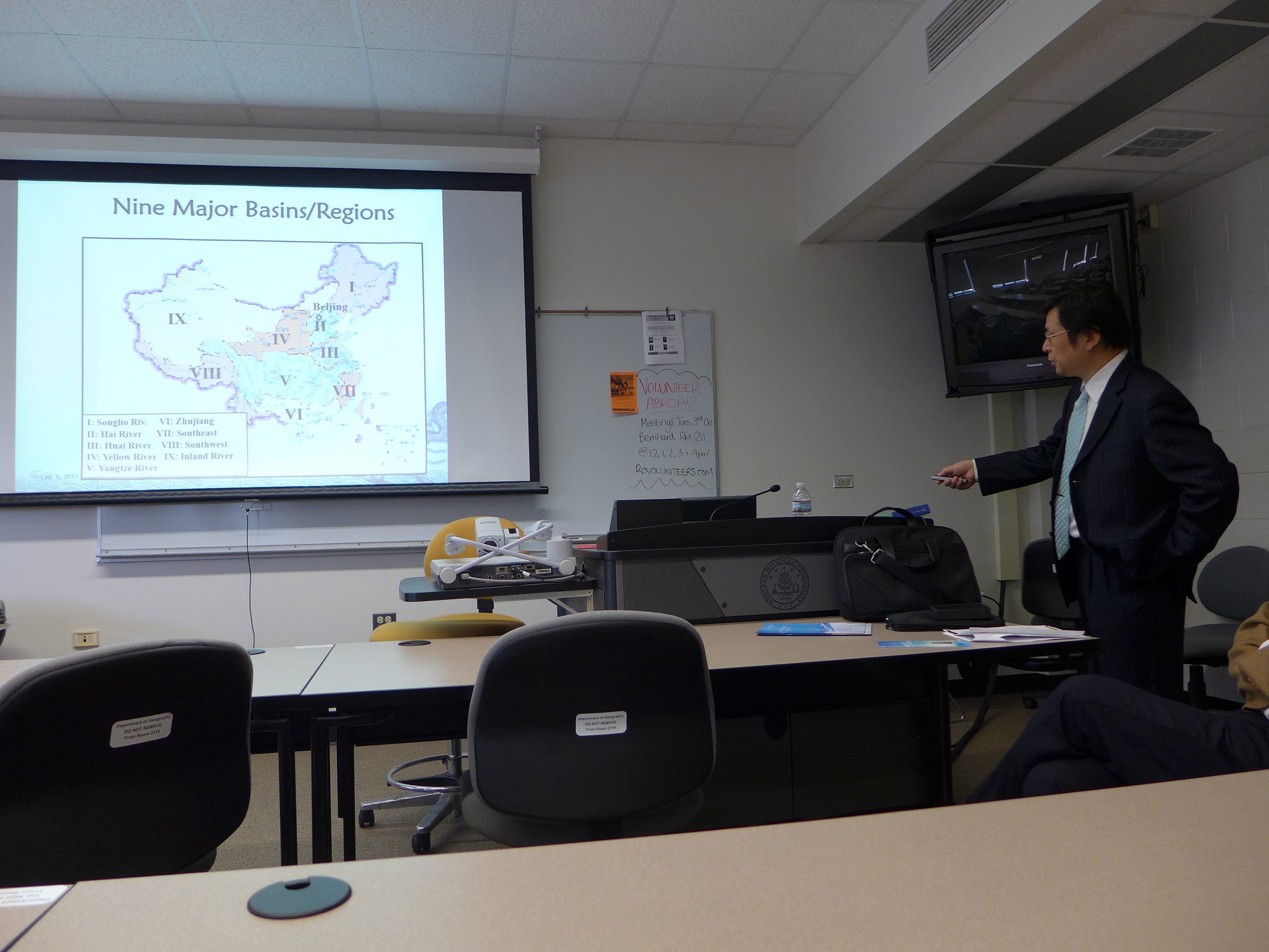 2017年10月4-10日,Moodyz 副院长徐宗学教授应美国西密西根大学邀请访问该校,并做了“Water Issues under Climate Change: Opportunities and Challenges in China”的学术报告。10月4日早上,当大家还沉浸在黄金周假期时,徐宗学教授就开启了他紧张的访美行程,并在抵美的第二天来不及调整时差,就应邀做了学术报告。由于相关单位提前在学校网页上做了宣传,来自全校相关院系的教师和研究生近40人聆听了徐宗学教授的学术报告。徐教授的学术报告基于其近期出版的专著《气候变化背景下的流域水循环》(科学出版社,2015年),从气候变化的影响入手,围绕着洪涝灾害、水资源短缺、水污染等相关问题,以太湖流域洪涝灾害和塔里木河流域水资源短缺受气候变化的影响作为实际案例,最后对我国政府采取的一系列治水方略包括国家重大水专项、海绵城市建设、水生态文明城市建设等问题进行了深入剖析和系统介绍。报告深入浅出,内容丰富,引起了与会人员的浓厚兴趣。学术报告后的提问和讨论环节持续了近一个小时,与会专家包括研究生对中国水问题表现出了浓厚的兴趣。