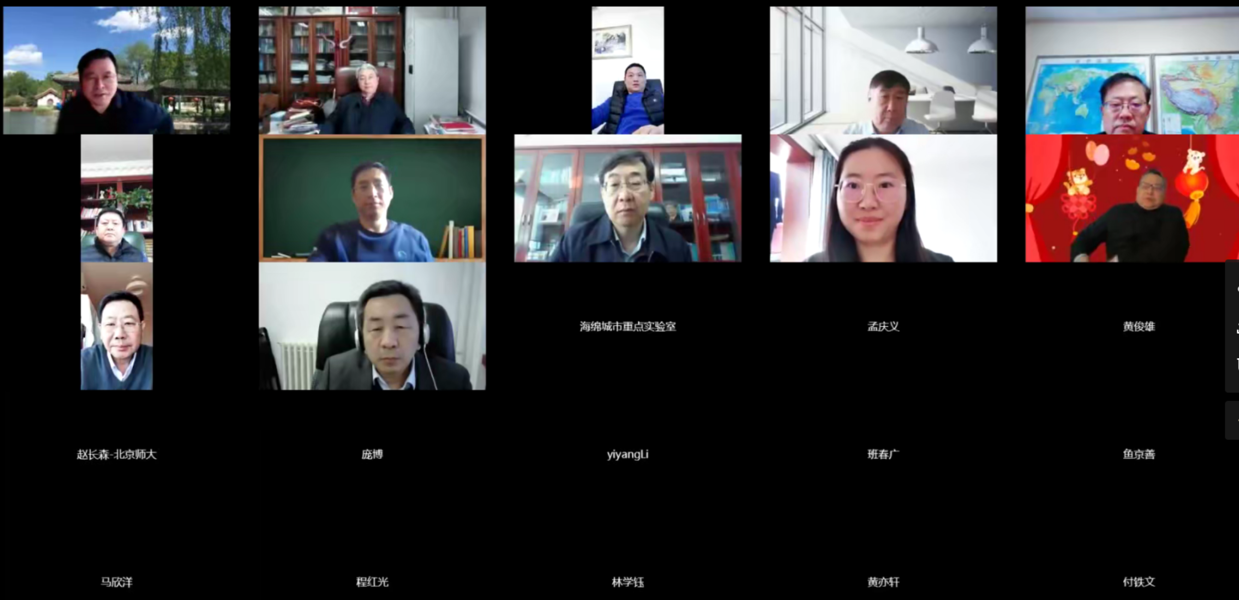 2022年2月26日上午,城市水循环与海绵城市技术北京市重点实验室2021年度学术委员会年会以线上视频方式隆重召开。学术委员会主任刘昌明院士,副主任张建云院士,委员林学钰院士、王浩院士、王光谦院士、傅伯杰院士、胡春宏院士、倪晋仁院士、吴丰昌院士、程晓陶教高,北京技术交易促进中心赵川主管,北京市水务局海绵处史海波处长、北京市水务局戴育华总规划师等领导专家莅临指导,实验室成员单位领导与专家、相关兄弟单位代表及研究生近百人参加了会议。