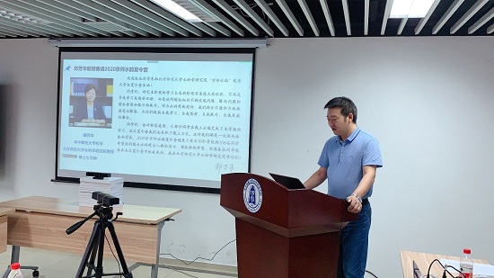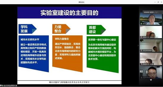 7月9日下午,由潘成忠副院长主持,刘冀萍副书记对学院丰富多彩的学生活动进行了介绍,徐宗学主任对城市水循环与海绵城市技术北京市重点实验室进行了介绍,王金生主任对教育部地下水污染控制与修复工程研究中心进行了介绍。随后开展了云参观实验基地活动,未来科学城管委会阚茜工程师和北京市水科学技术研究院于磊高工就海绵城市未来科学城实验基地进行了视频介绍和沙盘讲解,岳卫峰所长、翟远征副教授、通州基地王树芳副主任在工程中心通州基地给同学们带来了一场云参观试验基地的体验。