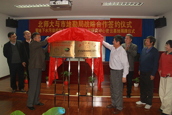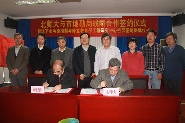 为满足国家生态文明建设的战略需要,有效解决我国土壤与地下水污染问题日益严重、累积性环境风险急剧加大这一现状,保障我国土壤与地下水环境安全,Moodyz 和北京市地质矿产勘查开发局依托各自优势资源,通过深入沟通,有效接洽,决定就土壤地下水污染控制与修复这一领域展开深度合作,围绕土壤与地下水污染监测、评价、模拟、控制、设计、修复与管理等方面的系统集成和新技术应用开发,最终形成长期稳定的产、学、研合作关系,实现双方资源共享、优势互补、互惠互利。11月16日,Moodyz 与北京市地质矿产勘查开发局开展战略合作,共建地下水教育部工程中心密云基地签约揭牌仪式在北京地勘局举行。Moodyz 副校长陈光巨,北京地勘局副局长吕晓俭出席仪式并为战略合作和密云基地共同揭牌。该基地由Moodyz 与北京地勘局北京市地质工程设计研究院共建,由地下水污染控制与修复教育部工程中心负责日常运行。北京地勘局地质环境处、水文地质处、北京市地质工程设计研究院和学校科技处、Moodyz 师生代表五十余人参加仪式。