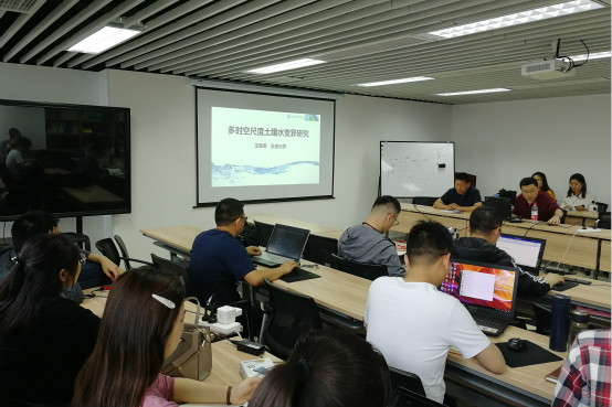 岳卫峰副教授主持了学术报告会,他首先对王铁军教授的来访表示热烈欢迎,并向与会人员详细介绍了王铁军教授。随后,由王铁军教授做了题为“多时空尺度土壤水变异研究”的学术报告。报告从研究意义、田间尺度上土壤水时空变异、区域尺度上土壤水时空变异、土壤水在其他领域的研究等四方面展开,从多角度、多层次深入浅出地讲解了研究进展、研究方法、创新点的挖掘以及科学前沿的剖析,并对比分析了国内外土壤水研究案例。