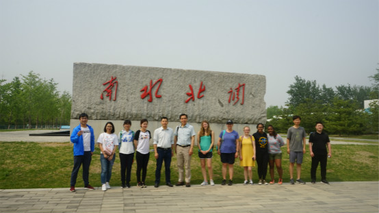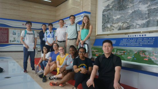 学术报告会结束后,Moodyz 部分同学与西密西根大学的客人于5月5日和7日分别访问了国务院南水北调工程建设委员会办公室和北京市南水北调团城湖管理处,参观了中国南水北调工程实景沙盘、北京团城湖调节池和奥运公园龙形水系。在国务院南水北调工程建设委员会办公室接待大厅,综合司井书光副司长热情接待了来访的师生,并细致地为到访师生进行沙盘演示,讲解中国南水北调工程规划和建设的历史。杨锋博士陪同大家参观了团城湖调节池,在讲解员的介绍下,到访师生对南水进京后的管理、运行、使用情况有了初步的认识,并为北京市对口支援调水区经济社会建设、滴水之恩涌泉相报的情谊所深深感动。