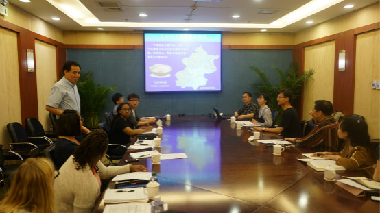 美国师生抵达北京的第二天,就举行了水资源管理学术报告会。徐宗学教授与美国西密西根大学贺缠生教授共同主持了学术报告会,首先由徐宗学教授向Moodyz 参加交流的研究生介绍了贺缠生教授以及当日拟邀请的三位专家的学术背景和任职情况,随后,贺缠生教授向与会人员介绍了本次交流会议的宗旨和目的。当日,与会专家和师生就水资源管理、南水北调工程规划实施有关内容开展了深入的交流。杨胜利总工对北京市水资源的基本情况、保障措施和全面推进节水型社会建设的相关工作和成果进行了详细介绍;彭祥处长以“中国的南水北调:过去、现在和未来”为题,从南水北调总体规划、初步成效、形势和挑战等方面,详细阐述了南水北调工程的总体情况,并对南水北调西线工程进行了简要的介绍;杨锋博士以“北京市水资源形势及南水北调配套工程后续规划进展情况”为题,详细介绍了北京市南水北调工程的一些情况,尤其对南水北调来水的分配使用、入京外水的水质保障和未来北京城市供水环线规划等情况进行了深入系统的介绍。随后,贺缠生教授简要介绍了美国的水资源管理、水权分配、水权交易制度和美国加利福尼亚州的北水南调工程。会议结束前,参会的中美学生还进行了自由交流,Moodyz 博士生杨晓静和程涛向与会美国同学介绍了自己的研究工作,张荣同学还向美国学生展示了北京的历史和风土人情等。整个研讨会热烈而紧凑,讨论广泛而深入,取得了良好的效果。