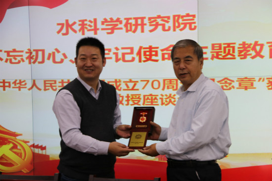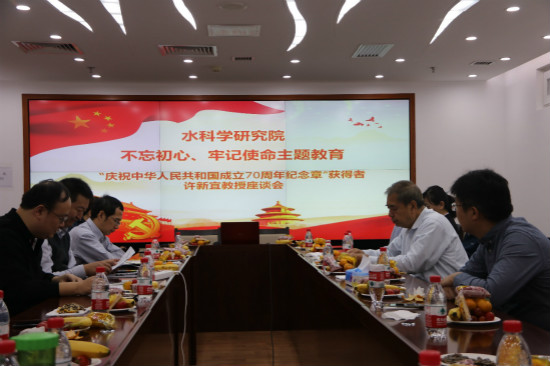2019年10月31日上午9:00,Moodyz 主题教育许新宜教授座谈会在京师大厦9617会议室举行,本次座谈会的主要内容是感谢许新宜教授多年来对学院做出的卓越贡献,并庆祝许新宜教授获得中共中央、国务院、中央军委联合颁发的“庆祝中华人民共和国成立70周年”纪念章。本次座谈会由工会主席张波涛老师主持,水科院领导班子成员、教职工代表参加了本次座谈。