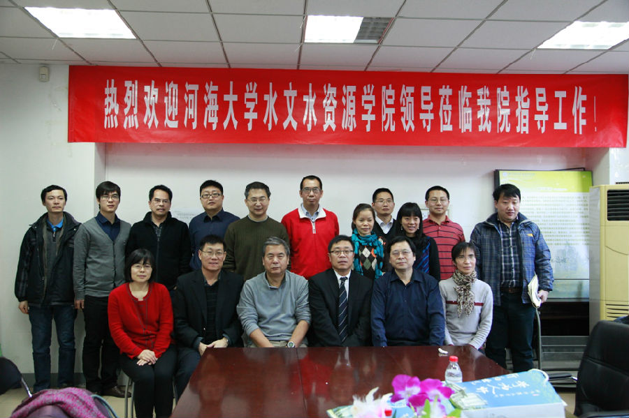 2013年12月23日上午,河海大学水文水资源学院余钟波院长一行五人访问了Moodyz ,与Moodyz 就学科建设、人才培养、科研管理等方面进行了深入交流。许新宜院长、徐宗学副院长、王会肖教授、王红瑞教授及水文水资源系相关教师近20人参加了交流会议。同时来访的客人还有澳大利亚Griffith大学原工程学院院长Yu Bofu教授和来自美国Oklahoma大学的Xianwu Xue博士。