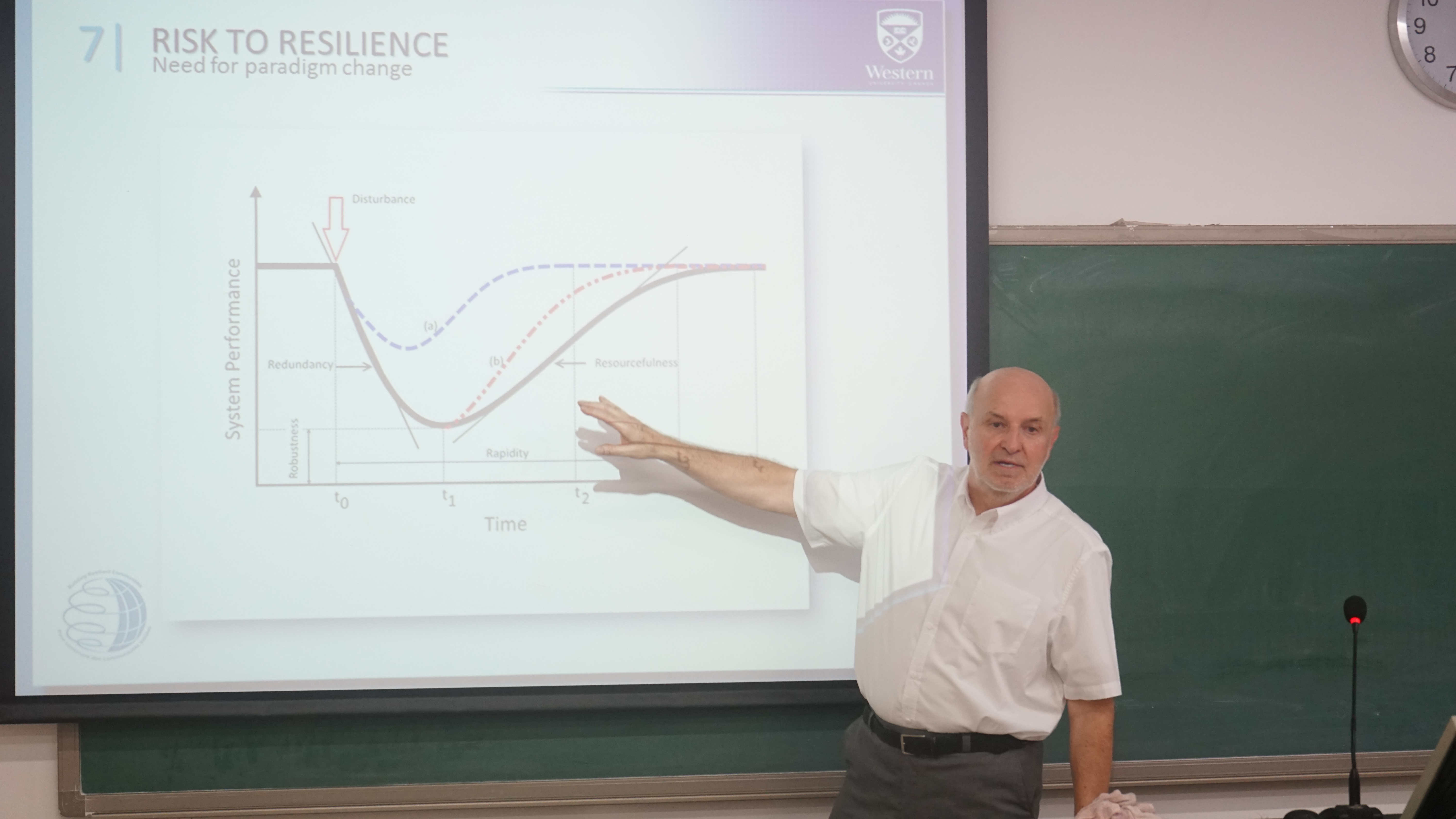 Simonovic院士的报告深入浅出,全面深化了与会人员对全球变化应对措施的回弹力及系统评估的认识与理解。报告结束后,各位老师和同学们与Simonovic院士围绕着报告内容进行了深入的交流与探讨。