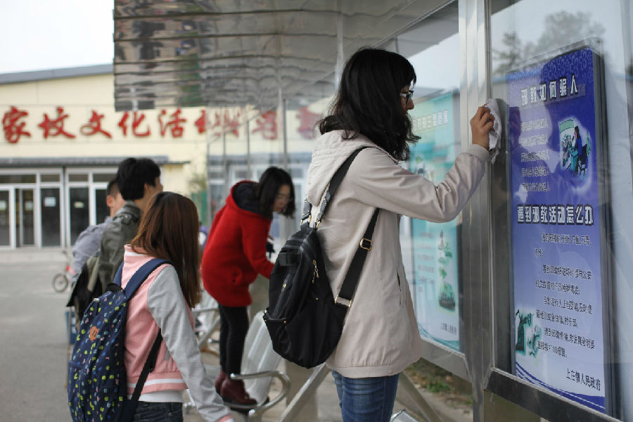 为了更好地使同学们认识农村,加强实践锻炼。马帅师兄带领同学们实地参观了村庄水井房、污水处理站等场所,并与工作人员深入交流,全面了解村庄的供水、用水和污水处理方面的实际情况。经双方沟通交流后,决定接下来的活动中将进行村庄用水的采样与分析工作,测定村庄用水安全状况,并提出合理化建议等。在温馨家园内,学生党员们还重点参观调研了蔬菜大棚及其内部的灌溉设施等,大家结合自己的专业知识,就相关问题还与工作人员进行了讨论、交流。随后,同学们积极踊跃在村内开展环保活动。在马帅师兄的建议下,大家分为两组为村文化活动中心广场及风筝工艺坊门前的宣传栏"洗了一场澡”。同学们卷起袖头,拿起抹布,登上梯子,擦起村委会宣传栏,虽然寒风凛凛,但是一想到可以为村庄做出自己的贡献,同学们干的热火朝天,宣传栏也换了"新颜”。同学们的热情与认真也赢得了过往村民的好评和称赞。