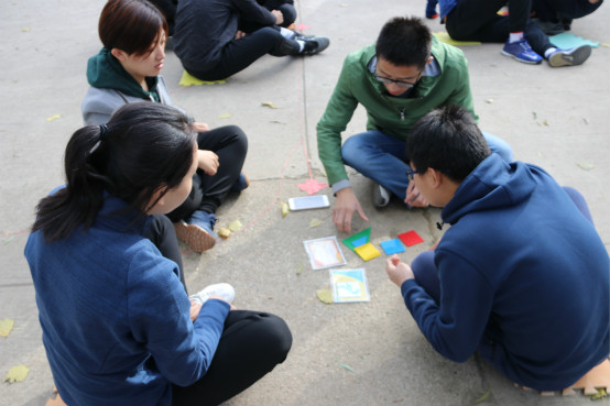 下午的训练项目以交流、智慧、时间为主题。首先是“急速60秒”项目,同学们需要小组轮换,在规定时间内完成不同图案卡片上的数字识别,并完成排序。活动中小组内群策群力,小组间戮力同心,在大家共同努力下,顺利完成任务的同时,对时间观念有了更加直观而深刻的认识。最后是“七巧板”项目,同学们被分为7个小组,并要在40分钟内完成任务卡上的拼图任务,活动中各组成绩或高或低,但都对沟通、信任和领导力有了新的理解。