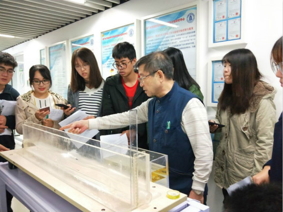 授课中石川教授引用了大量的实际研究案例,讲述了流体力学在科学研究中的应用,实例涉及了河流、湖泊、海洋等多种水体。学生们对实际案例很有兴趣,课程直观的讲解了环境流体力学的研究范围及思路,拓展同学们的科学视野。石川教授对经典流体力学方程进行了系统的梳理,并在黑板上完整进行了方程的推导,并引导同学们进行分组讨论。在结束了经典流体力学的理论课程教学后,专门的实验课使得学生们对经典的水力学现象有了直观的认知,并有助于学生们更加生动的理解和记忆相关公式概念。学生们分小组进行了实验,同时组内也有不同的分工,锻炼了同学们的协作能力。课后布置了撰写实验报告的作业,有助于同学们系统归纳知识点。
