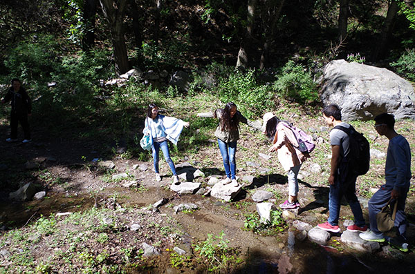 下午2:30,同学们收拾好心情,恢复好体力后,开始下山。下山路段较短,但海拔落差较大,大家兵分两路,体力好的同学在前面打头阵开路,大部分女同学在副领队的带领下在后面有条不紊地行进。下午4时左右,全体同学终于到达指定目的地——柳沟村。此次穿越行程共计约14公里,跨越净高程近700米,全体老师和同学敢于挑战,突破自我,顺利完成了远足任务。