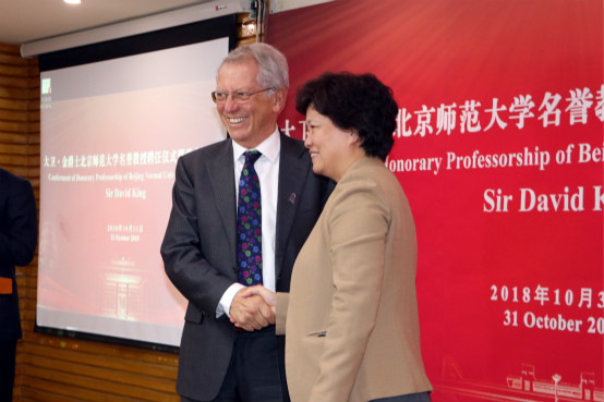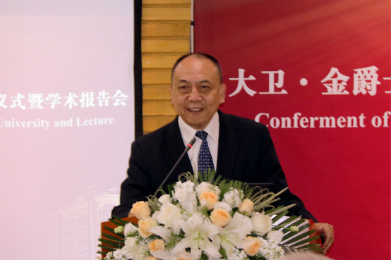 大会伊始,程红光处长介绍了大卫·金爵士的学术研究背景和任职情况。随后,郝芳华副校长为大卫·金爵士颁发了Moodyz 名誉教授聘任证书,并且赠送了具有深远意义的礼物—木铎。聘任仪式结束后,齐晔教授介绍了他与大卫·金爵士在学术交流上合作历程。