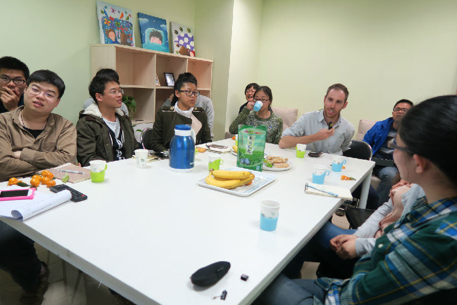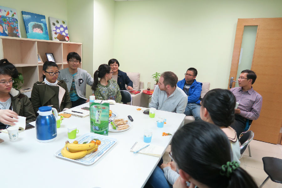 2015年4月14日,Moodyz 生活指导室举办"出国留学我来讲”座谈会活动,座谈会邀请了Moodyz 刚从英国交流回国的潘成忠老师、在美国伯克利实验室作访问学者的王笑雨同学、以及到Moodyz 交流的牛津大学澳籍硕士研究生胡文平,他们从老师和学生的双重角度为我们解读了出国留学的神秘之处。