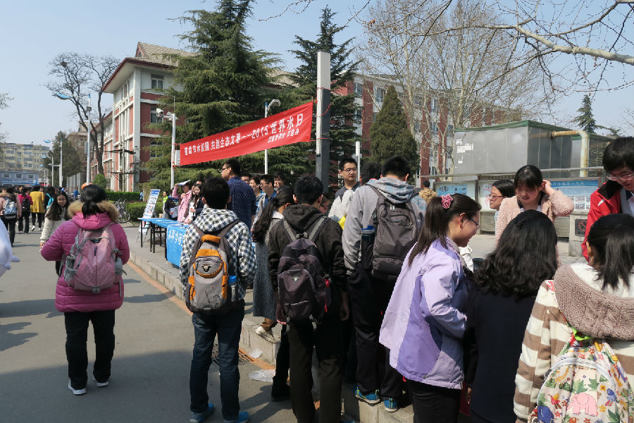 015年3 月22日是第二十三届"世界水日”,3月22至28日是第二十八届"中国水周”。这一届"世界水日”的宣传主题为"节约水资源,保障水安全”。为此,Moodyz 研究生会举办了"建设节水校园,共创生态文明”为主题的宣传活动。此次活动还得到Moodyz 后勤管理处节能办的大力支持,Moodyz 党总支副书记吕晓慧老师以及后勤管理处节能办公室主任郝成庆老师等到现场参加了活动。
