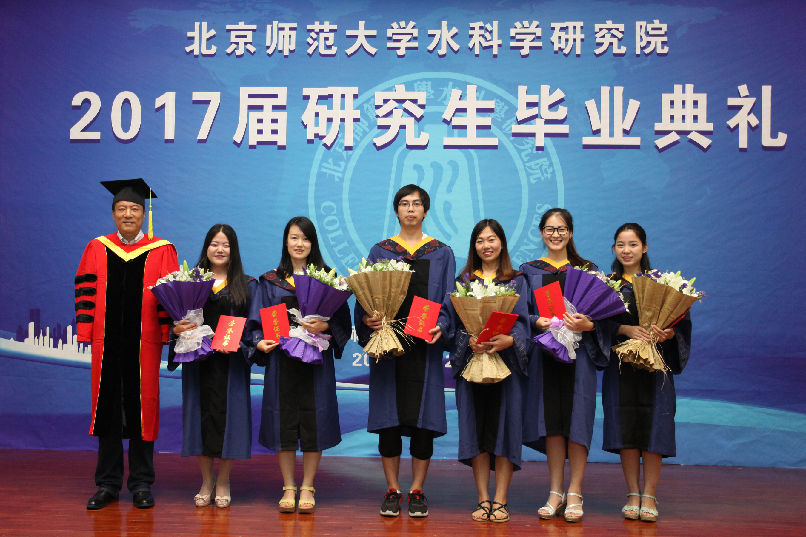 典礼开始前,全体师生观看了毕业生回顾视频,毕业生们回顾了三年来的成长,表达了毕业时对母校的不舍。郝芳华院长首先致辞,表达对2017届毕业生的美好祝福,感谢同学们见证和参与到学院的工作和发展中,对毕业生在读期间的优异表现予以肯定,鼓励他们为国家发展做出积极贡献。中国环境科学研究院副院长宋永会讲话,肯定了中国环科院和Moodyz 联合培养毕业生的科研及工作能力,并表示将联合培养深入进行下去。