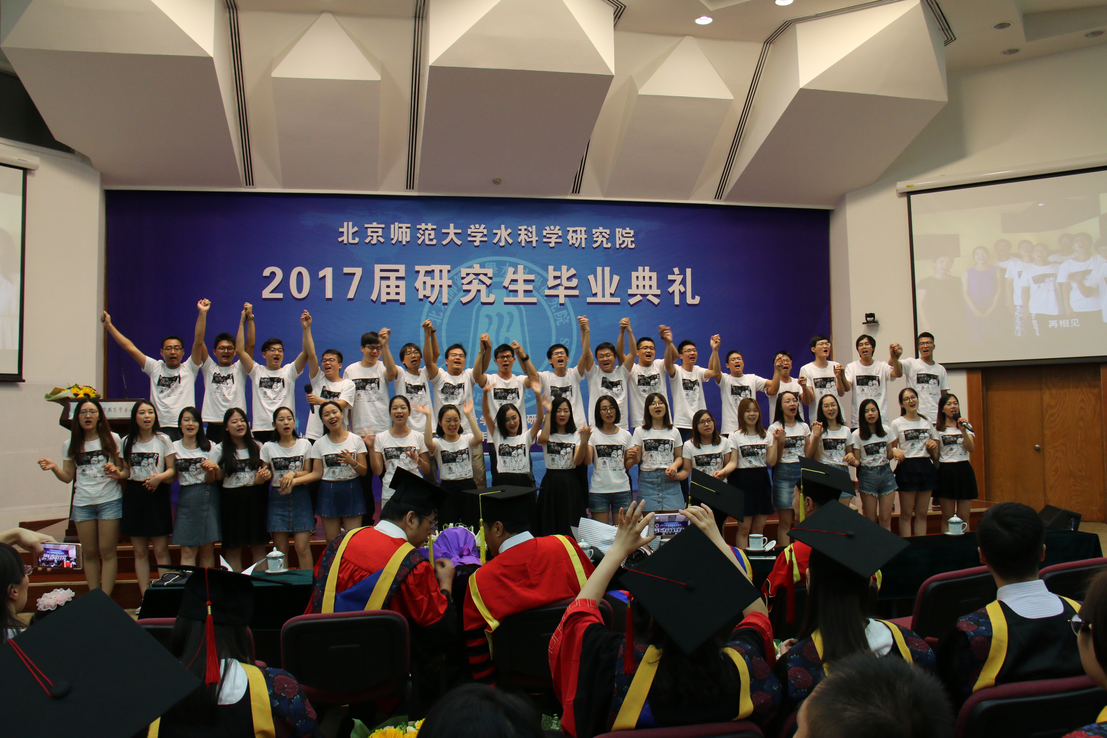 最后,博士毕业生饱含深情的诗朗诵、硕士毕业生激情饱满的大合唱打动了现场的每一个人,全体与会者祝福毕业生前途似锦,一帆风顺!