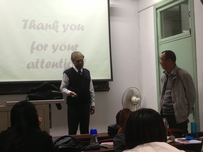 《现代水文学》为研究生专业基础课,授课对象为全校地学类专业研究生。Jayawardena教授利用《现代水文学》课程的机会,分别以《Water - State of the resource》、《Hydro-meteorology - Extreme weather》为主题,分3次与同学们深入探讨了水文学所关注的热点问题,拓宽了同学们的视野。此外,Jayawardena教授还利用最后一次课的机会,以《Thesis writing》为主题,为同学们讲解了英文科技论文写作中需要注意的问题。