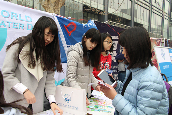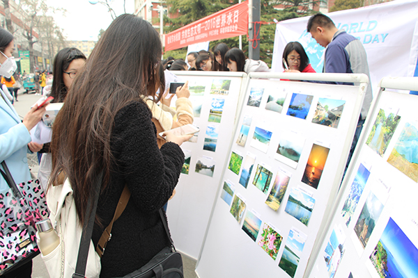 每年的3月22日是世界水日。这一天,我们向水致敬;这一天,我们希望改善那些仍在用水及相关方面处于不利境地的人们的生活;这一天,我们为在未来更好地利用水资源做出准备。2016年世界水日以“水与就业”为主题,旨在强调水对创建和支撑高质量工作岗位的中心作用。沿承Moodyz 优良传统,在这天,Moodyz 水利学子,身为人先,争做敬水先锋。本次世界水日活动由Moodyz 与后勤管理处、白鸽志愿协会联合举办,世界水日外场宣传活动由Moodyz 主办,学院党总支副书记吕晓慧老师以及后勤管理处节能办公室主任郝成庆老师等到现场参加了活动。