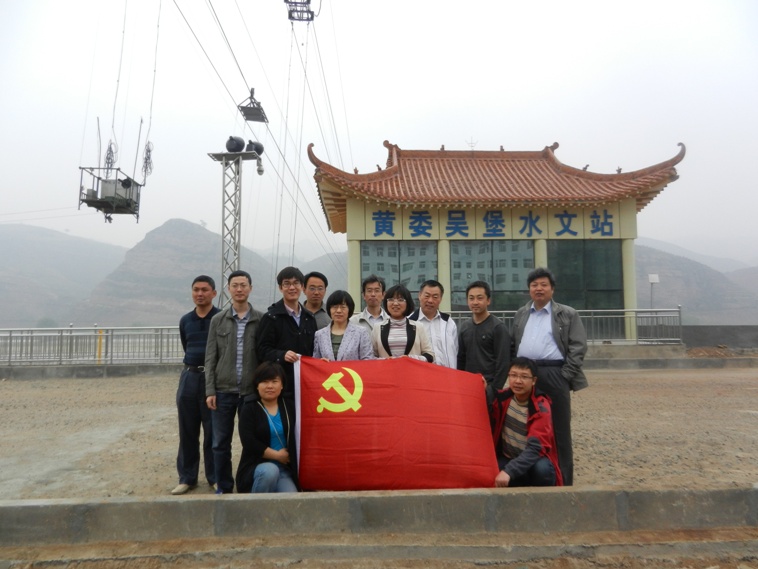 次日,在清晨的绵绵细雨之中,教师们参观了黄河水利委员会吴堡水文站并于工作人员进行了交流。吴堡水文站多次获得黄河水利委员"先进班组”、"先进集体”、全国水利系统"先进水文站”等表彰。在参观了水情报汛、洪水预报系统后,大家乘坐缆道实地体验了下"飞渡”黄河的惊险。教师们走下河边还与正在进行黄河断面监测的水文工作者进行了实地交流,此时天空仍下着小雨,我们深深体会到了水文工作者的艰辛,我们为他们的敬业精神所感动。