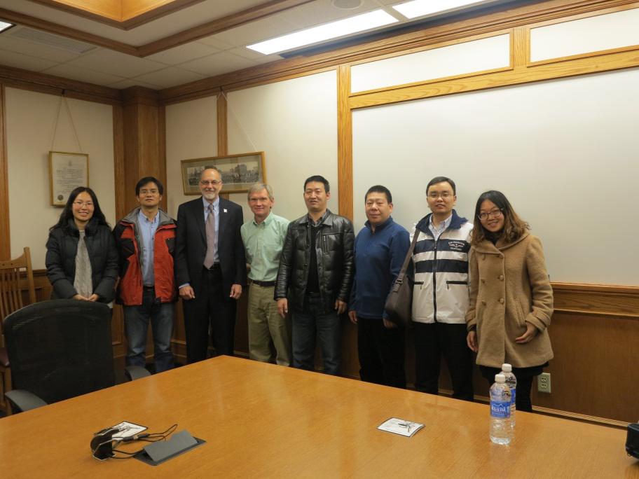 内布拉斯加大学林肯分校(University of Nebraska Lincoln)是位于美国中西部的著名公立综合性大学,是内布拉斯加州最顶尖的大学。该校教学严谨且研究成果丰富被誉为公立常青藤,其农业科学与自然资源学院长期居于世界领先地位。当地时间12月14日,Moodyz 师生听取了该校自然资源系Xunhong Chen(陈洵洪)教授以"美国高平原地区地下水灌溉与水文生态演变”为题目的学术汇报,陈教授介绍了美国高平原区含水层概况及近些年地下水灌溉产生的生态效应,并对林肯市境内普拉特河水文生态演变趋势及傍河取水应用现状作了详细阐述,指出地下水数值建模是实现河流-地下水一体化管理的重要途径。Moodyz 滕彦国教授则针对目前正在开展的国家重大水专项中"松花江流域傍河取水水质安全保障关键技术及示范”课题的研究内容和开展状况作了介绍,并与陈教授进行了深入探讨。通过本次座谈交流,让我们看到国内外水生态环境现状的差异以及国内外傍河取水研究侧重点的不同之处,同时也看到了国外傍河取水技术的优势所在,对接下来课题的实施提供了很好的借鉴作用。次日,跟内布拉斯加林肯大学校长Ron Yoder及自然资源系系主任 John P.Carroll进行了圆桌座谈。两位老师介绍了该大学的基本概况以及学科建设情况,并探讨了今后的交流合作方向,座谈会议圆满结束。