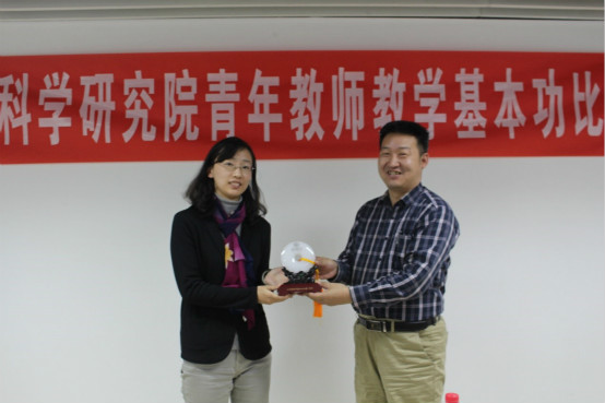 11月1日下午,比赛正式拉开帷幕。比赛中,参赛教师运用精心设计的多媒体课件,突出教学重点,明确教学目的,在15分钟内充分展现出课堂教学的条理性、逻辑性、科学性和艺术性。评委由学院领导、外请专家和学生评委组成,评委根据教学组织基本功、教学表达基本功、授课内容、板书教态、教学效果等指标对参赛教师的教学水平进行评判。通过投票评比,朱宜老师获得一等奖,杨洁老师获得二等奖。最后,滕彦国书记为获奖教师进行颁奖。
