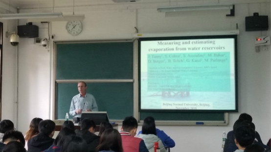 2018年10月27日,应Moodyz 刘海军教授的邀请,以色列农业研究组织水土环境研究所(Institute of Soil, Water and Environmental Sciences, Agricultural Research Organization, Israel)高级研究员,Josef Tanny教授对北师大水科院进行为期11天的来访,在此期间,Josef Tanny教授为Moodyz 师生带来了一次精彩的学术报告“Microclimate, evapotranspiration and water use efficiency”,和两次课程讲座,“Crop evapotranspiration–models and measurements”和“Evaporation from open water bodies”。 Josef Tanny教授的报告和课程受到了广大师生的热烈欢迎,现场座无虚席。