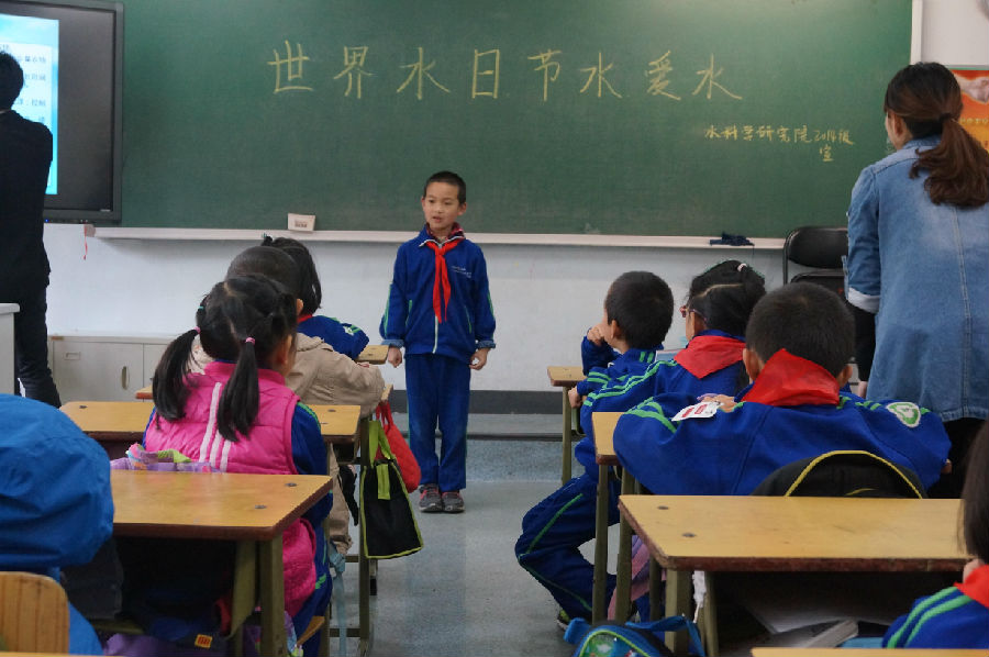 党员进小学宣讲活动是本学院研究生党支部的传统活动,在世界水日之际,党员同志们义务为孩子们讲授水的知识,充分发挥专业进行志愿服务。