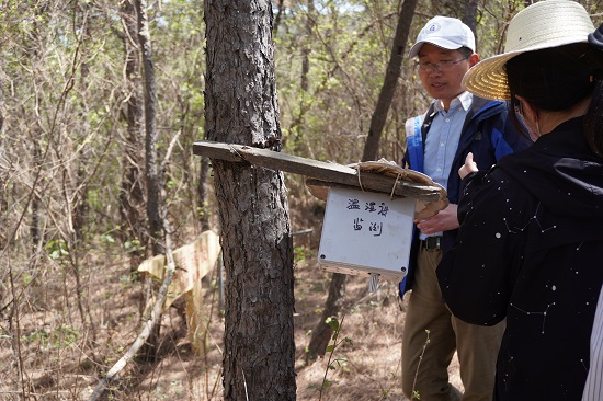5月5日第三天,师生前往易县水土保持实验站,同学们观测了幼林沟试验小区和坡面径流等试验小区,了解了三角堰、树木蒸散发、树干径流、冠层穿透雨、土壤水分和水势、双环入渗、地表径流和壤中流等测量设备。刘海军教授向同学们讲解了“工程+植物”护坡的作用以及温湿度测量仪器的使用方法。在参观附近的清西陵古建筑时,也了解到古建筑的排水设施——神兽蚣蝮,以及古时收集雨水,储备水源的铜缸——铜海。可见平衡雨水与排灌的智慧是古往今来一直被探索的。