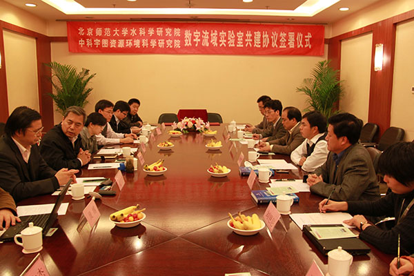 第二天,代表团首先访问了位于大阪市的摄南大学,代表团成员受到了该校校长今井光規先生、理工学部部长森脇俊道先生的亲切接见。随后,应都市环境工学科邀请,徐宗学教授参加了该系组织的“首届国际交流公开讲座”,并应邀做了题为“気候変動の影響下における洪水、干ばつと水汚染”的特邀报告,除了本校的教师、学生外,还有来自当地政府部门、科研院所、咨询机构的专家学者以及普通市民,容纳百人的会场座无虚席,原定一个小时的讲座,持续了一个半小时。下午,代表团成员一行在日本黄河研究会秘书长澤井健二教授的陪同下,又驱车赴京都参加了“中日黄河研究会2012年度学术研讨会”,徐宗学教授代表中国黄河研究会做了题为“Major Issues in the Yellow River Basin: Perspective from the Yellow River Forum”。年近90岁高龄的日本著名学者、京都大学名誉教授芦田和男先生,原日本地球环境研究所福嶌義宏教授、京都大学角哲也教授以及来自高校、科研单位的专家学者30余人参加了会议。尤其是在日本德高望重的卢田先生的与会,为中日黄河研究会2012年度研讨会议画上了浓浓的一笔,在当晚举行的中国黄河研究会代表团欢迎晚宴上,坐在轮椅上的卢田先生热情洋溢的讲话,更是凸显了日本学术界对黄河相关问题进行深入研究的浓厚兴趣和对中国代表团来访的高兴心情。欢迎晚宴前,中日双方代表签署了“中日黄河研究会合作与交流备忘录”,并达成了于9月份黄河论坛共同举办中日黄河研究会分会的合作意向。