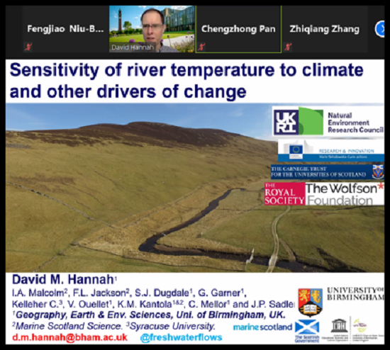 David M. Hannah教授是伯明翰大学的水文学教授,还是联合国教科文组织水科学系主任以及生命与环境科学研究学院主任,曾于2014年获得国际水文科学协会的Tison奖。他的工作重点为将水文学与气候学、生态学和社会联系在一起,探究气候和其他变化驱动因素下的水循环过程,水文事件(洪水,干旱)以及其他相关影响。David M. Hannah教授围绕“Sensitivity of river temperature to climate and other drivers of change”主题展开讲座,介绍了其团队在不同规模进行的对于河流水温对气候、土地管理和其他控制措施的敏感性,为河流水温变化的驱动力和基本过程提供了有力的科学见解,进而为相关的管理决策的制定和实施提供了参考。David M. Hannah教授还介绍了新型监测和建模技术在河流温度研究和实践中的潜力。