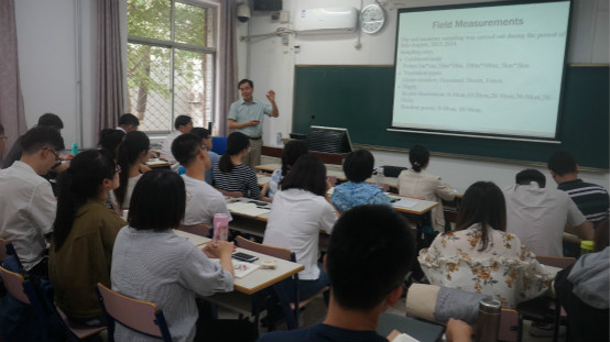 徐宗学教授主持了本次学术报告会。首先,徐宗学教授对贺缠生教授的来访表示热烈欢迎,并对贺教授的学术成就与所获荣誉进行了简要介绍。随后,贺教授作了题为“Modeling heterogeneity of soil moisture and its impacts on the mountainous watershed hydrology in Northwest China”的学术报告。报告指出,研究土壤异质性对水文过程的影响是水文科学中极为重要的环节,但由于实际条件的限制,尤其对于地形地貌复杂、难以进行现场监测的山区流域,过去相关研究十分缺乏,但当前该研究已受到水文工作者愈来愈广泛的关注。贺教授详细介绍了野外监测相关事宜,包括采样点的选择以及样点布设、实际监测过程中遇到的一系列问题,并以黑河上游流域为例进行了实例讲解,得到研究区内土壤水分空间异质性以及不同覆被条件下土壤水分特征的差异等结果。报告结束后,各位老师和同学们围绕着报告内容与贺教授进行了深入的交流和讨论。最后,徐宗学教授以及全体师生对贺教授的精彩报告再一次表示了诚挚的感谢。