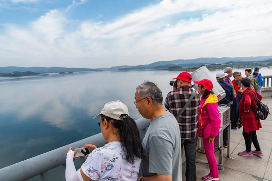2021年5月20日,游客在湖北省丹江口市丹江口水库。 (新华社记者 才扬/图)