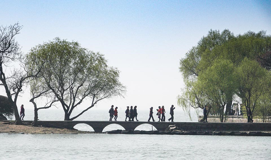 2021年3月13日,游人在江苏省无锡市太湖鼋头渚景区游览。 (新华社记者 杨磊/图)
